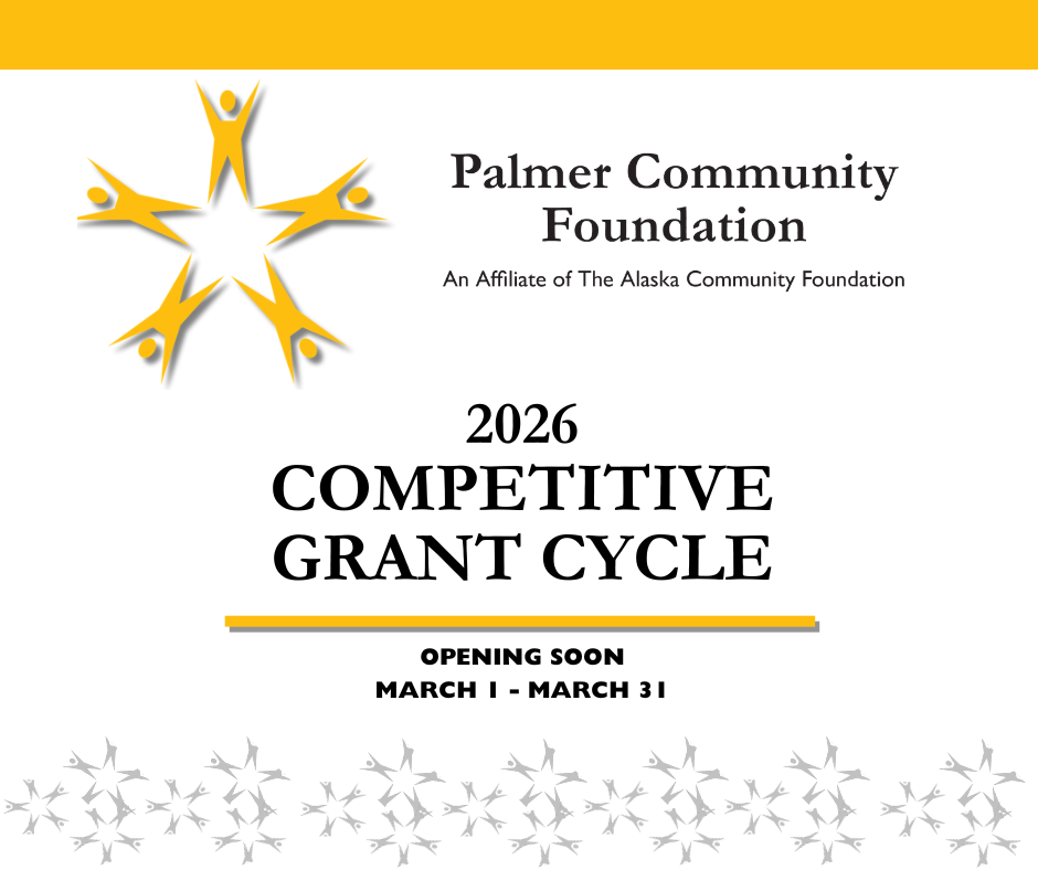 The Palmer Community Foundation is a long-term endowment for our local community. Donations to our permanent endowment fund are professionally managed and protected by The Alaska Community Foundation. Your contribution to PCF is an investment in the future of our community and 100% of your gift goes directly to grantmaking. As our endowment grows through investment income, bequests, and continued donations, it will offer an increasingly large resource to meet local needs over time.